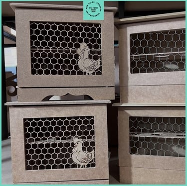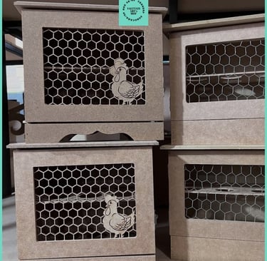 Porta ovos artesanal em MDF, resistente e decorativo, ideal para organizar a cozinha. Produzimos modelos sob medida.