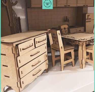 Mini móveis feitos sob medida com corte a laser e pintura artesanal, perfeitos para decoração, maquetes ou casinhas em miniatura.