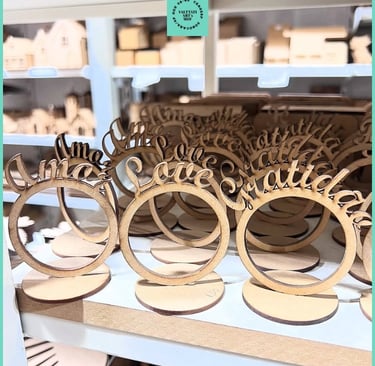 Kits de mesas em MDF práticos e decorativos, ideais para eventos, aniversários e decorações temáticas.
