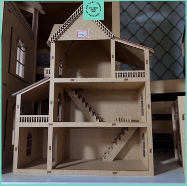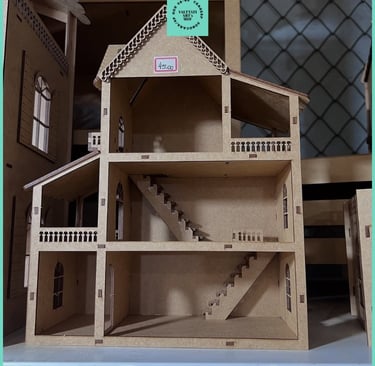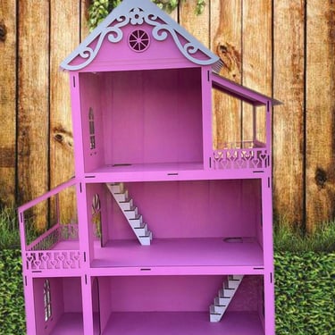 Casinhas miniatura com corte a laser e pintura artesanal, modelos de Barbie ou Polly, detalhadas e totalmente personalizáveis.