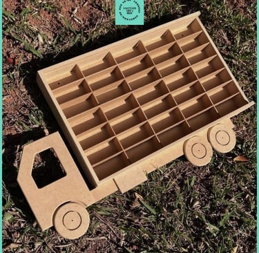 Porta carrinhos artesanal e resistente, ideal para organizar miniaturas e decorar ambientes. Personalizamos com cores, modelos e tamanhos para valorizar sua coleção.